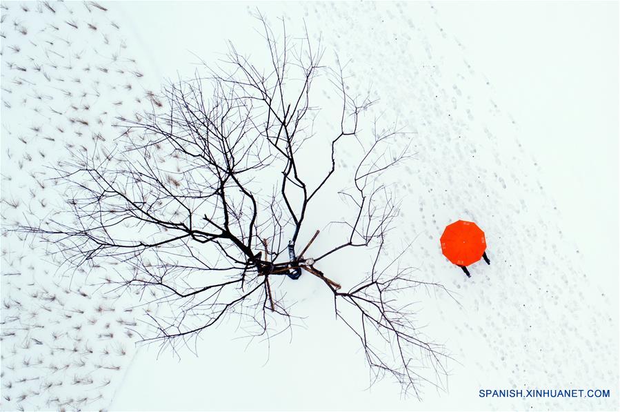 HUBEI, enero 27, 2018 (Xinhua) -- Una persona camina en el cubierto de nieve Lago Donghu en la ciudad de Wuhan, provincia de Hubei, en el centro de China, el 27 de enero de 2018. (Xinhua/Ke Hao)