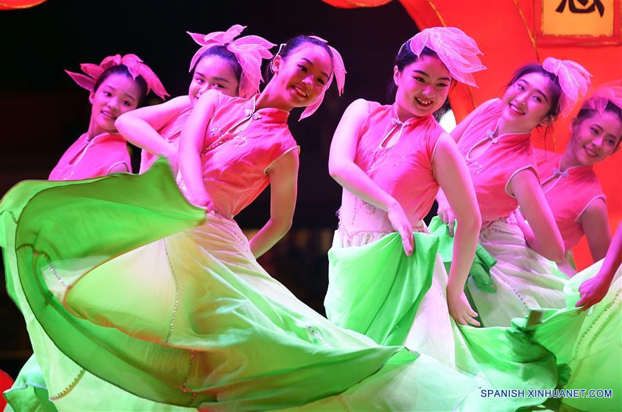 Bailarinas actúan durante una ceremonia de inauguración llevada a cabo en el Barrio Chino de la ciudad de Singapur, capital de Singapur, el 27 de enero de 2018. Singapur llevó a cabo una ceremonia oficial de iluminación e inauguración en el Barrio Chino para el próximo A?o Nuevo chino. (Xinhua/Then Chih Wey)