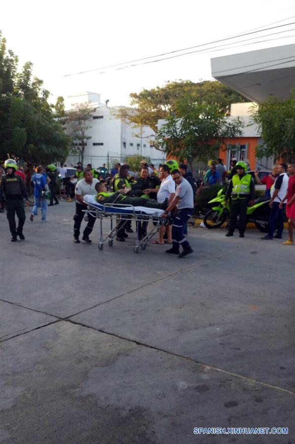 BARRANQUILLA, enero 27, 2018 (Xinhua) -- Paramédicos trasladan a un policía herido luego del atentado con explosivos perpetrado en la estación policial del barrio San José en Barranquilla, Colombia, el 27 de enero de 2018. La policía de Colombia confirmó que cuatro uniformados perdieron la vida y 42 resultaron heridos, 17 de gravedad, tras el atentado con explosivos perpetrado el sábado en la estación policial del barrio San José en Barranquilla. "La carga explosiva dejó cuatro policías muertos y 42 heridos, los cuales fueron trasladados al Hospital de la Policía Nacional en la capital del Atlántico y a otros centros asistenciales, donde fueron visitados por el director general de la Policía Nacional, general Jorge Hernando Nieto, quien lidera la investigación", se?aló la institución en un comunicado. (Xinhua/COLPRENSA)