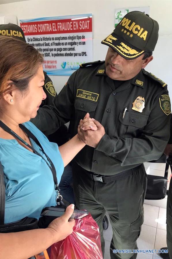 BARRANQUILLA, enero 27, 2018 (Xinhua) -- El director general de la Policía Nacional, general Jorge Hernando Nieto (d), conversa con una mujer, luego del atentado con explosivos perpetrado en la estación policial del barrio San José, en Barranquilla, Colombia, el 27 de enero de 2018. La policía de Colombia confirmó que cuatro uniformados perdieron la vida y 42 resultaron heridos, 17 de gravedad, tras el atentado con explosivos perpetrado el sábado en la estación policial del barrio San José en Barranquilla. "La carga explosiva dejó cuatro policías muertos y 42 heridos, los cuales fueron trasladados al Hospital de la Policía Nacional en la capital del Atlántico y a otros centros asistenciales, donde fueron visitados por el director general de la Policía Nacional, general Jorge Hernando Nieto, quien lidera la investigación", se?aló la institución en un comunicado. (Xinhua/COLPRENSA)