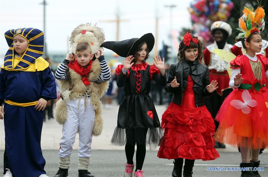 Ni?os de Croacia y del extranjero participan en el desfile de carnaval, en Rijeka, Croacia, el 27 de enero de 2018. (Xinhua/Goran Kovacic)