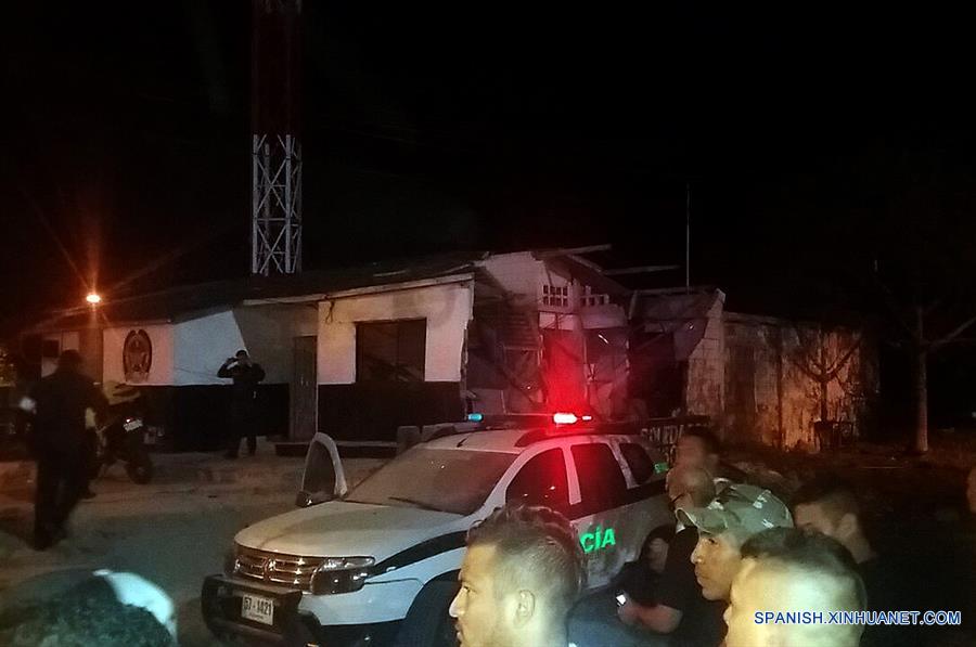 BARRANQUILLA, enero 28, 2018 (Xinhua) -- Personas se reúnen luego de la detonación de un artefacto explosivo cerca de una estación de policía, en Soledad, en el área metropolitana de Barranquilla, Colombia, en las primeras horas del 28 de enero de 2018. Un nuevo atentado en otra estación de Policía colombiana, esta vez en Soledad, área metropolitana de Barranquilla, ocurrió la madrugada del domingo y dejó un saldo de cuatro oficiales y un civil heridos. (Xinhua/COLPRENSA)