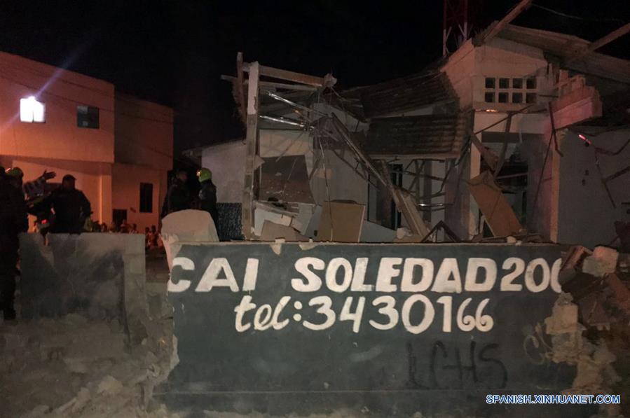 BARRANQUILLA, enero 28, 2018 (Xinhua) -- Elementos de seguridad vigilan luego de la detonación de un artefacto explosivo cerca de una estación de policía, en Soledad, en el área metropolitana de Barranquilla, Colombia, en las primeras horas del 28 de enero de 2018. Un nuevo atentado en otra estación de Policía colombiana, esta vez en Soledad, área metropolitana de Barranquilla, ocurrió la madrugada del domingo y dejó un saldo de cuatro oficiales y un civil heridos. (Xinhua/COLPRENSA)