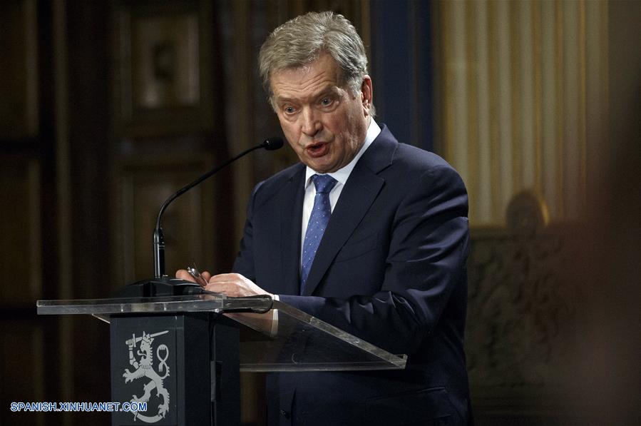 HELSINKI, enero 28, 2018 (Xinhua) -- El presidente finlandés, Sauli Niinisto participa durante una conferencia de prensa después de ganar las elecciones presidenciales en Helsinki, Finlandia, el 28 de enero de 2018. Después de terminar el conteo de votos, el presidente de Finlandia, Sauli Niinisto, fue declarado ganador de la elección presidencial celebrada el domingo. (Xinhua/Matti Matikainen)