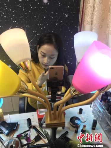 Yan Xiu se prepara para su programa vía internet“Bai Bian A Xiu". [Foto: Chinanews.com]