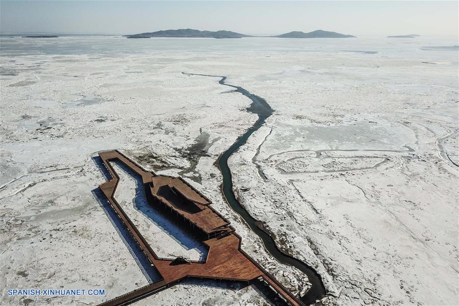 LIAONING, enero 29, 2018 (Xinhua) -- Vista del hielo marino en las aguas circundantes de la ciudad de Xingcheng, en la provincia de Liaoning, en el noreste de China, el 29 de enero de 2018. El hielo marino se formó en la región debido a la baja temperatura continua. (Xinhua/Pan Yulong)