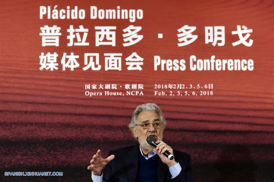 BEIJING, enero 29, 2018 (Xinhua) -- El tenor espa?ol Plácido Domingo participa en una conferencia de prensa de la opera Thais en Beijing, capital China, el 29 de enero de 2018. La opera fue adaptada por el dramaturgo Louis Calais de acuerdo con la novela del mismo nombre por el francés Anatole France y se presentará en el Centro Nacional para las Artes Escénicas desde el 2 de febrero. (Xinhua/Luo Xiaoguang)
