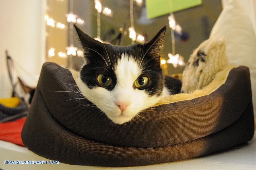 BYDGOSZCZ, enero 30, 2018 (Xinhua) -- Un gato permanece acostado en el primer café para gatos en Bydgoszcz, Polonia, el 30 de enero de 2018. (Xinhua/Jaap Arriens)