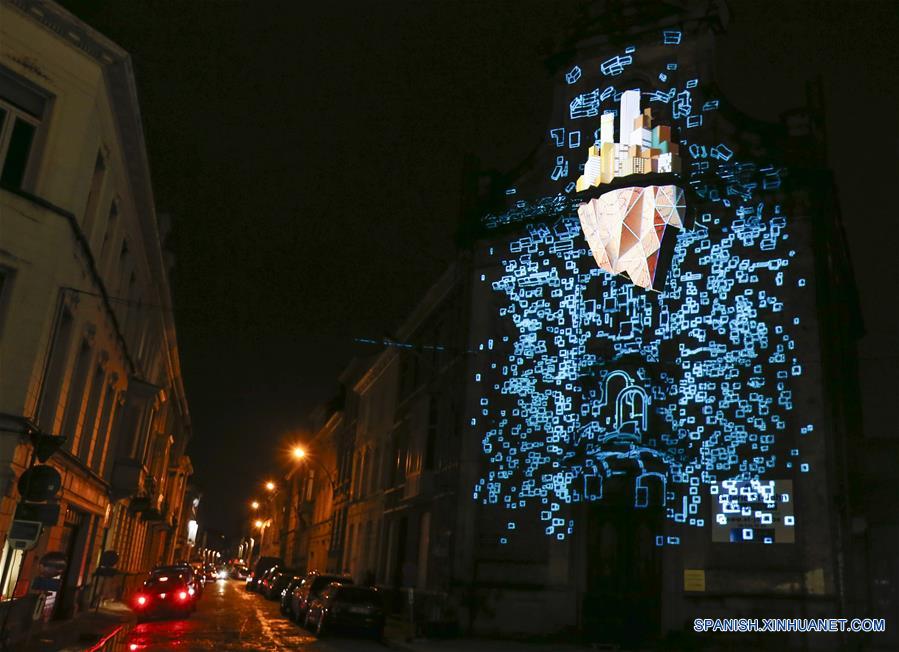 Una proyección de luz ilumina un edificio durante el festival de luz en Gante, Bélgica, el 31 de enero de 2018. De acuerdo con información de la prensa local, el festival, que se lleva a cabo cada tres a?os, fue inaugurado el miércoles y se realizará hasta el 4 de febrero. (Xinhua/Ye Pingfan)