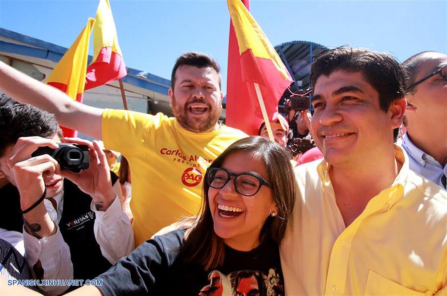 SAN JOSE, febrero 4, 2018 (Xinhua) -- El candidato a la Presidencia de Costa Rica por el Partido Acción Ciudadana (PAC), Carlos Alvarado (d), reacciona después de emitir su voto durante las elecciones presidenciales, en San José, Costa Rica, el 4 de febrero de 2018. El presidente de Costa Rica, Luis Guillermo Solís, llamó el domingo a los costarricenses a que "expresen la opinión ciudadana" en las urnas, que abrieron desde las 06:00 hora local (12:00 GMT) para que los ciudadanos elijan al nuevo mandatario, dos vicepresidentes y 57 miembros de la Asamblea Legislativa. (Xinhua/Partido Acción Ciudadana)