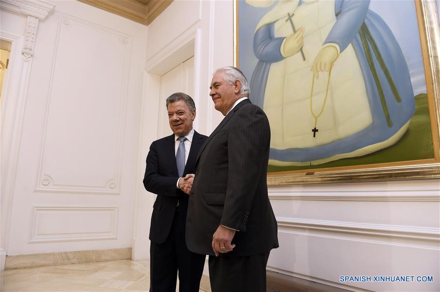BOGOTA, 6 feb (Xinhua) -- El secretario de Estado de Estados Unidos, Rex Tillerson, llegó hoy a Colombia en visita oficial, y analizará con el presidente colombiano, Juan Manuel Santos, la lucha contra las drogas ilegales y expresará su apoyo al posconflicto, luego de que la guerrilla de las FARC dejara sus armas y se convirtiera en un partido político.