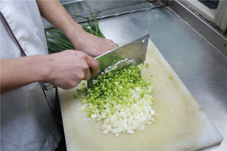 Chongqing,09/02/2018(El Pueblo en Línea) - Un auxiliar de cocina prepara los ingredientes para la elaboración de los platos que se ofrecen en el tren K9441. A medida que se acerca el Festival de la Primavera, cientos de millones de personas regresan al terru?o para celebrar con parientes y amigos la llegada del a?o nuevo chino. La temporada alta en el transporte ferroviario interprovincial eleva la demanda de las ofertas gastronómicas que se consumen durante los viajes. Para garantizar la calidad, todos los recursos alimenticios deben ser adquiridos, elaborados y distribuidos siguiendo un estricto protocolo de seguridad sanitaria. 6 de febrero del 2018. [Foto: Bao Liang]