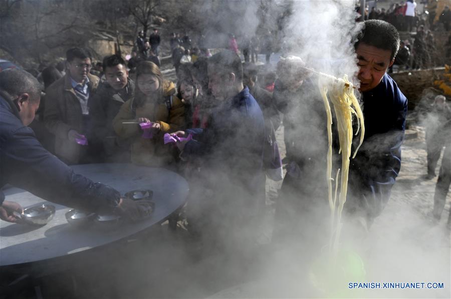 SHAANXI, febrero 8, 2018 (Xinhua) -- Residentes prueban los bocadillos locales en el día de Xiaonian, en la villa de Guojiagou del condado de Suide de la ciudad de Yulin, provincia de Shaanxi, en el noroeste de China, el 8 de febrero de 2018. Xiaonian, el día 23 o 24 del mes 12 del calendario lunar chino, marca el comienzo de la cuenta regresiva del Festival de Primavera. (Xinhua/Tao Ming)