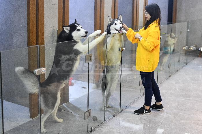 La empleada de un hotel para mascotas cuida a varios perros en Guangzhou, provincia de Guangdong, el viernes. [Foto por Chen Jimin / China News Service]