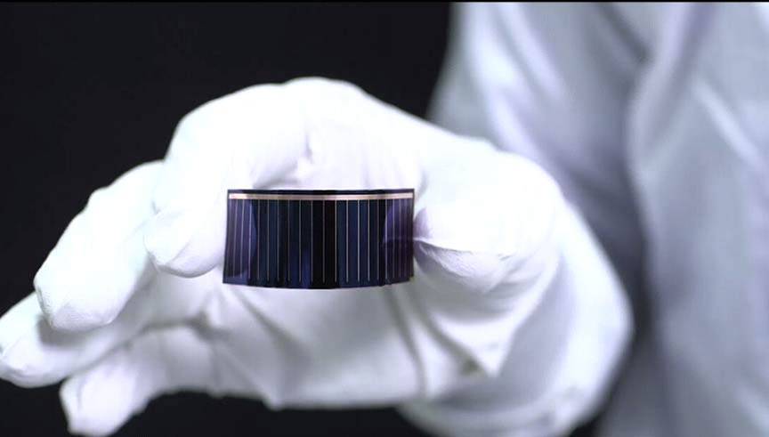 La célula solar de película fina desarrollada por Hanergy, líder mundial en tecnología de energía solar de película fina. [Foto proporcionada a chinadaily.com.cn]