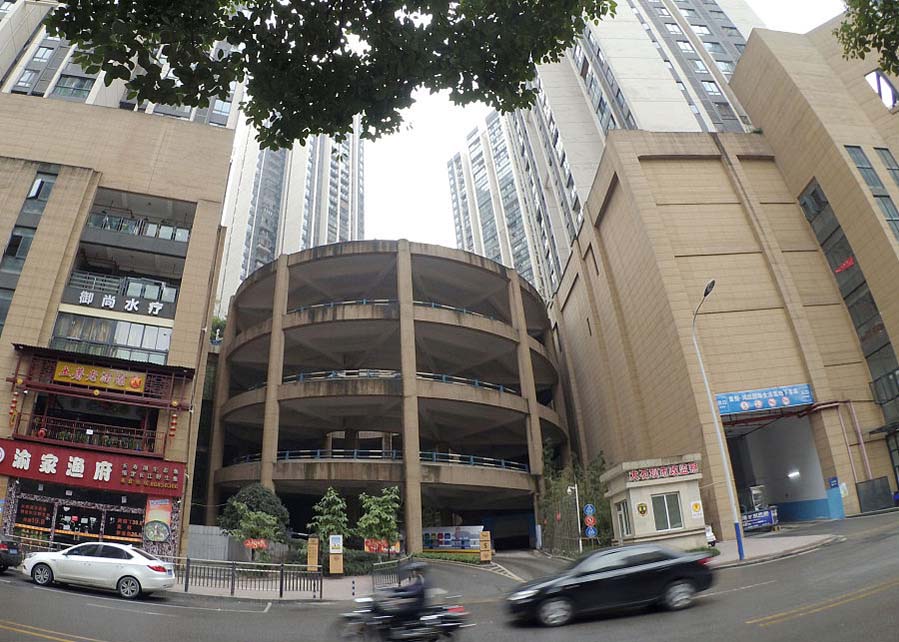 La vista de un estacionamiento en espiral de cinco pisos en una zona residencial en Chongqing el 11 de febrero de 2018. [Foto/VCG]