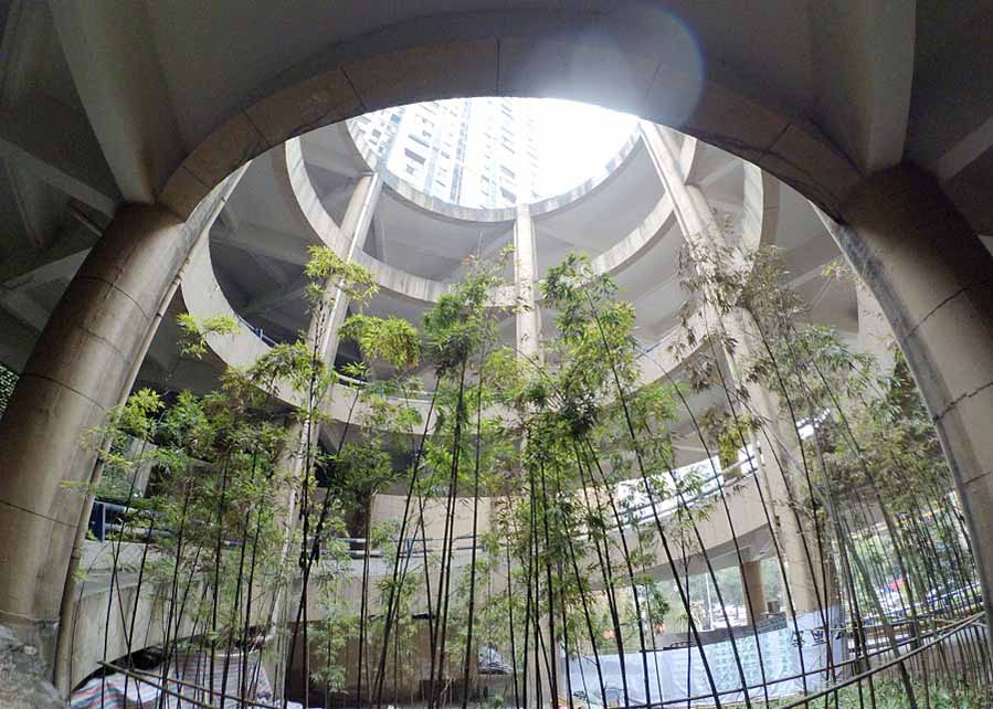 Interesante estacionamiento espiral de cinco pisos, situado en una zona residencial de Chongqing, 11 de febrero del 2018. [Foto: VCG]