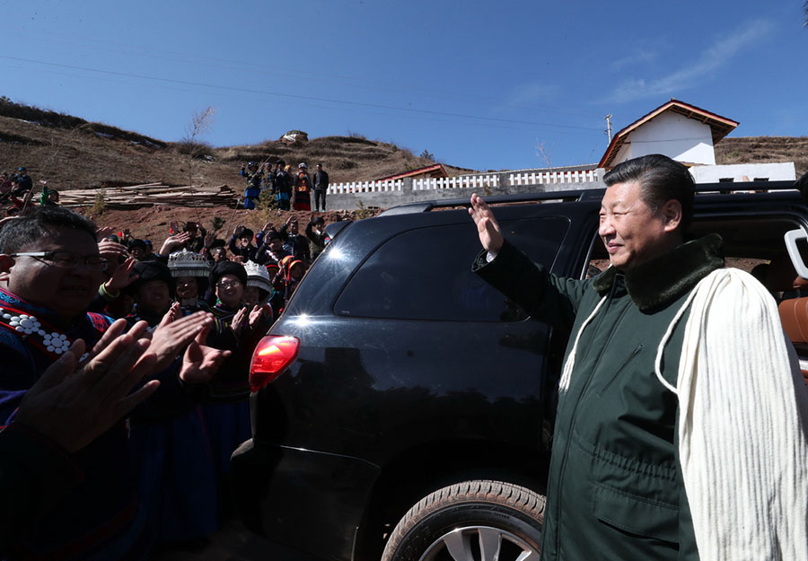 Xi se despide de los residentes locales de Huopu, un pueblo de Zhaojue, provincia de Sichuan, después de su visita de este domingo. [Foto: Xinhua]