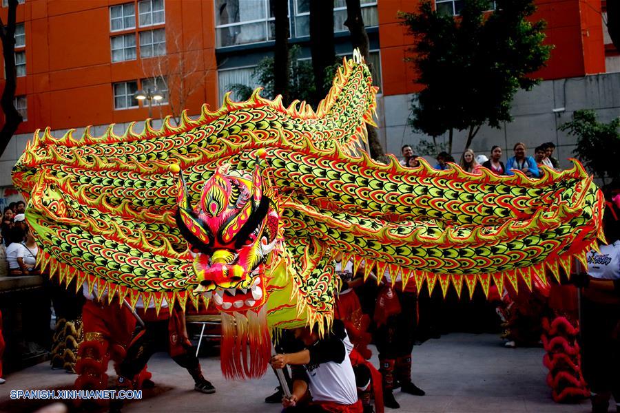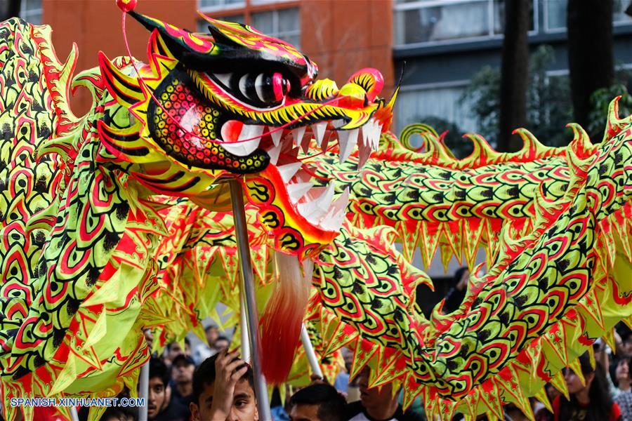 MEXICO, 15 feb (Xinhua) -- Majestuosos dragones, estridentes tambores, coloridas lámparas, sombrillas y ornamentos rojos, inundaron hoy la calle de Dolores, en el centro histórico de la Ciudad de México, para dar inicio a la celebración del A?o Nuevo o Fiesta de la Primavera en el Barrio Chino en esta urbe.
