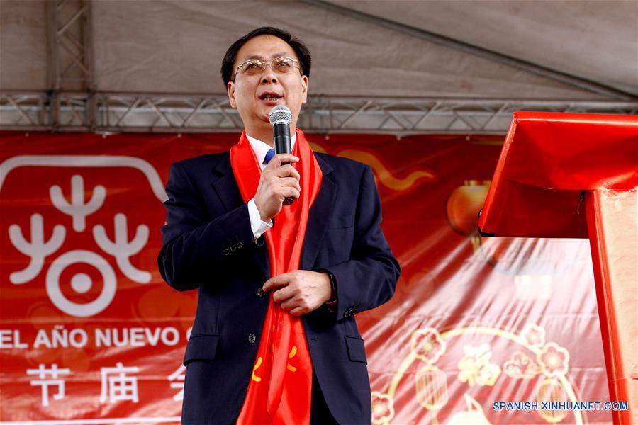El embajador de China en Venezuela, Li Baorong, pronuncia un discurso en un evento para celebrar el A?o Nuevo Lunar chino, en el municipio de Chacao, Caracas, Venezuela, el 18 de febrero de 2018. El evento, encabezado por el embajador de China en Venezuela, Li Baorong, exhibió platillos típicos, vestimenta tradicional y presentaciones artísticas de China. De acuerdo con la tradición china, el A?o Nuevo chino inició el 16 de febrero este a?o, y está dedicado al "Perro de Tierra", animal que significa carisma y bondad.(Xinhua/Boris Vergara)
