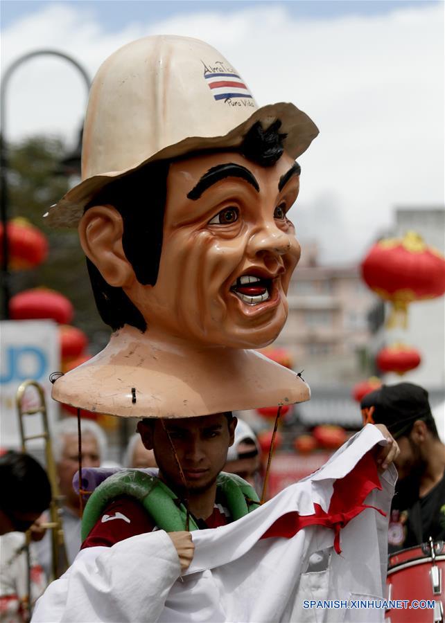Imagen del 17 de febrero de 2018, de un joven colocando una máscara de barro durante la ceremonia para celebrar el A?o Nuevo chino, en el Barrio Chino de San José, Costa Rica. La comunidad china de Costa Rica celebró el sábado en San José el segundo día de la Fiesta de Primavera o A?o Nuevo Lunar chino, con un gran evento en el Barrio Chino de la capital costarricense. Música de ambos países, exhibición de artes marciales, venta de comidas chinas tradicionales, muestra de productos chinos y un ambiente festivo, fueron parte de esta celebración de la colonia china en Costa Rica. (Xinhua/Kent Gilbert)