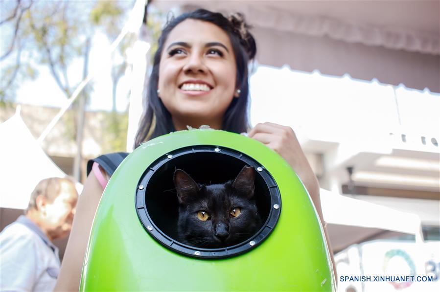 Una mujer carga a un gato durante el Gato Fest 2018, con motivo de la celebración del Día Internacional del Gato, en la Ciudad de México, capital de México, el 18 de febrero de 2018. De acuerdo con información de la prensa local, el objetivo del evento es promover la concientización sobre la salud y protección animal, principalmente de los felinos. (Xinhua/Francisco Ca?edo)
