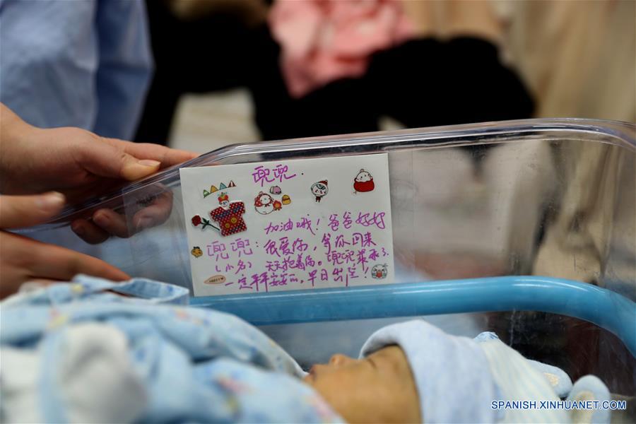 SHANGHAI, febrero 16, 2018 (Xinhua) -- Imagen del 15 de febrero de 2018 de una tarjeta de bendicion captada en la Unidad de Cuiadados Intensivos Neonatal (NICU, por sus siglas en inglés) del Hospital Infantil de la Universidad Fudan, en Shanghai, en el este de China. Los trabajadores médicos del hospital permanecieron en sus puestos de trabajo en la víspera del A?o Nuevo Lunar chino para cuidar de los pacientes. (Xinhua/Liu Ying)