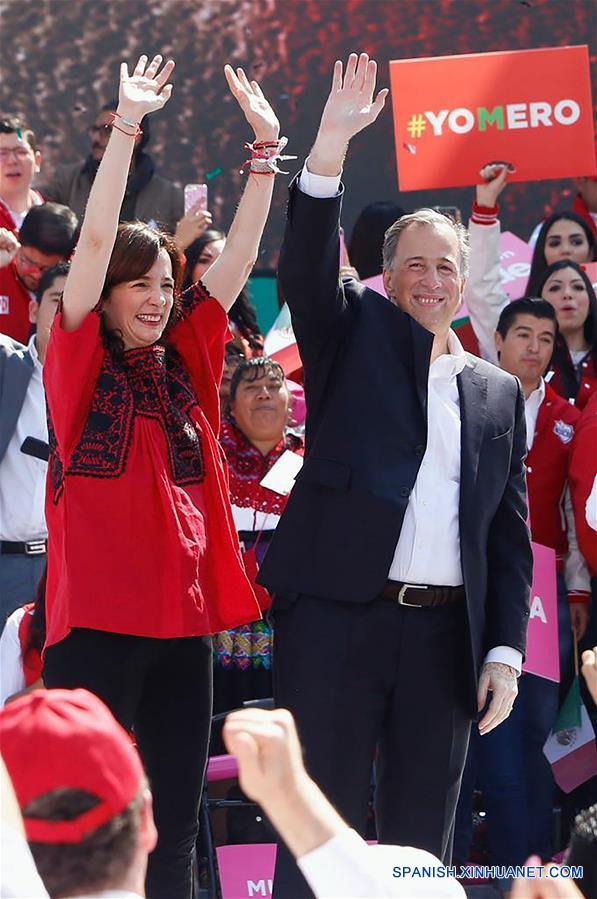 CIUDAD DE MEXICO, febrero 18, 2018 (Xinhua) -- José Antonio Meade (d), candidato a la presidencia de México por el Partido Revolucionario Institucional (PRI), toma protesta ante militantes del partido en el Foro Sol, en la Ciudad de México, capital de México, el 18 de febrero de 2018. (Xinhua/Ricardo Aldayturriaga)
