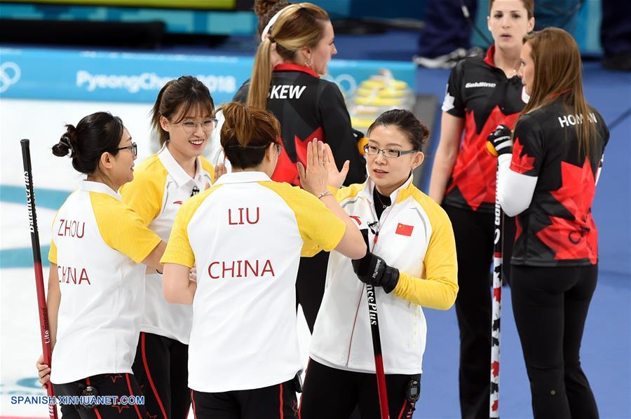 PYEONGCHANG, 20 feb (Xinhua) -- China logró mantener una peque?a posibilidad de ingresar a las semifinales al superar hoy a Canadá por 7-5 en la sesión de todos contra todos del curling femenino en los Juegos Olímpicos de Invierno 2018, que se realizan en el condado surcoreano de PyeongChang.