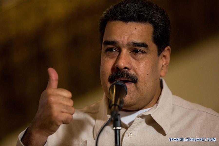 CARACAS, febrero 21, 2018 (Xinhua) -- El presidente venezolano, Nicolás Maduro, pronuncia un discurso durante una reunión con integrantes del partido Patria Para Todos (PPT), en el Teatro Nacional en Caracas, Venezuela, el 21 de febrero de 2018. El presidente venezolano, Nicolás Maduro, informó el miércoles que propondrá a la Asamblea Nacional Constituyente (ANC) que se realicen comicios para renovar los consejos legislativos regionales y los 335 consejos municipales, a la par de las elecciones presidenciales del 22 de abril. Maduro declaró que está de acuerdo con la propuesta hecha por el primer vicepresidente del Partido Socialista Unido de Venezuela (PSUV), Diosdado Cabello, quien propondrá que el próximo 22 de abril también se elija una nueva Asamblea Nacional. (Xinhua/Str)