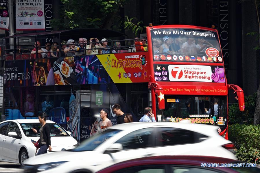 Un autobús lleno de turistas es captado en la Calle Orchard de la ciudad de Singapur, capital de Singapur, el 21 de febrero de 2018. El Gobierno de Singapur subirá el Impuesto a los Bienes y Servicios (GST, por sus siglas en inglés) del 7 por ciento actual al 9 por ciento entre 2021 y 2025. (Xinhua/Then Chih Wey)
