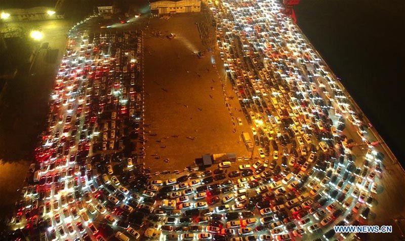 Vehículos esperan el servicio de ferry en Haikou, capital de la provincia de Hainan, 21 de febrero del 2018. [Foto: Xinhua]