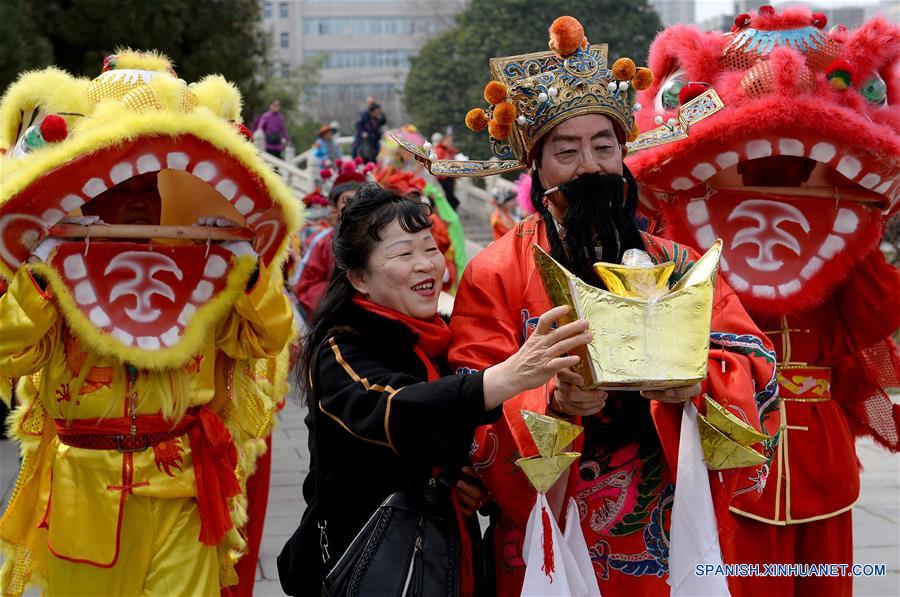 Personas asisten a una feria de templo para celebrar el A?o Nuevo Lunar, en la Pagoda Xiaoyan, en Xi'an, capital de la provincia de Shaanxi, en el noroeste de China, el 26 de febrero de 2018. (Xinhua/Liu Xiao)