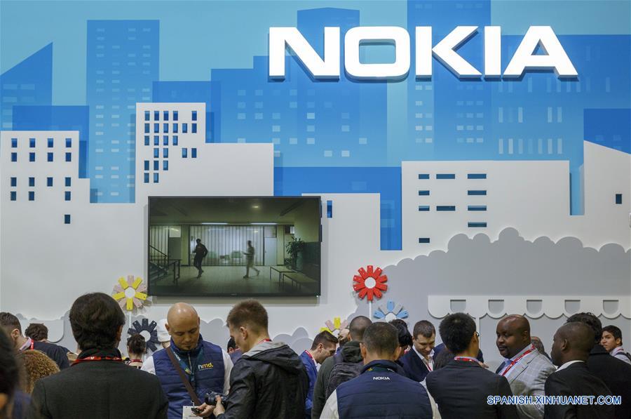Personas visitan el puesto de Nokia durante el primer día del Congreso Mundial de Móviles 2018 (MWC, por sus siglas en inglés), en Barcelona, Espa?a, el 26 de febrero de 2018. El rey de Espa?a, Felipe VI, inauguró el lunes el Congreso Mundial de Móviles 2018, acompa?ado por la alcaldesa de Barcelona, Ada Colau. En la 13a edición de la feria tecnológica internacional se prevé la asistencia de 108.000 personas, la misma cifra registrada en el 2017, y un impacto económico de 471 millones de euros. (Xinhua/Joan Gosa)