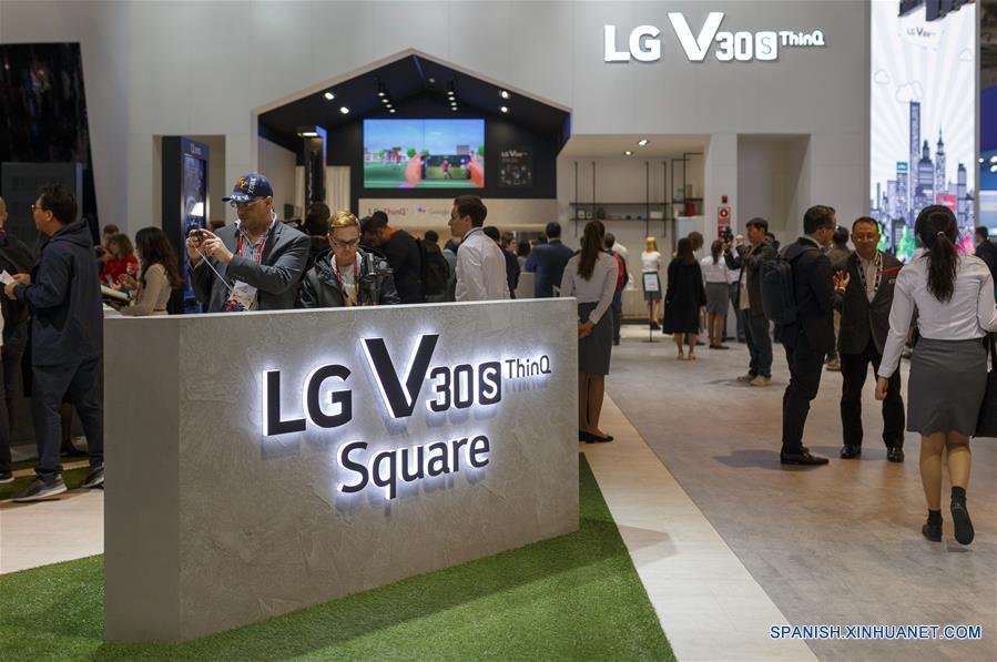 Personas visitan el estand de LG durante el primer día del Congreso Mundial de Móviles 2018 (MWC, por sus siglas en inglés), en Barcelona, Espa?a, el 26 de febrero de 2018. El rey de Espa?a, Felipe VI, inauguró el lunes el Congreso Mundial de Móviles 2018, acompa?ado por la alcaldesa de Barcelona, Ada Colau. En la 13a edición de la feria tecnológica internacional se prevé la asistencia de 108.000 personas, la misma cifra registrada en el 2017, y un impacto económico de 471 millones de euros. (Xinhua/Joan Gosa)