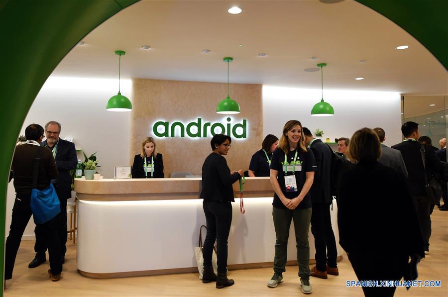 Personas visitan el estand de Android durante el primer día del Congreso Mundial de Móviles 2018 (MWC, por sus siglas en inglés), en Barcelona, Espa?a, el 26 de febrero de 2018. El rey de Espa?a, Felipe VI, inauguró el lunes el Congreso Mundial de Móviles 2018, acompa?ado por la alcaldesa de Barcelona, Ada Colau. En la 13a edición de la feria tecnológica internacional se prevé la asistencia de 108.000 personas, la misma cifra registrada en el 2017, y un impacto económico de 471 millones de euros. (Xinhua/Guo Qiuda)
