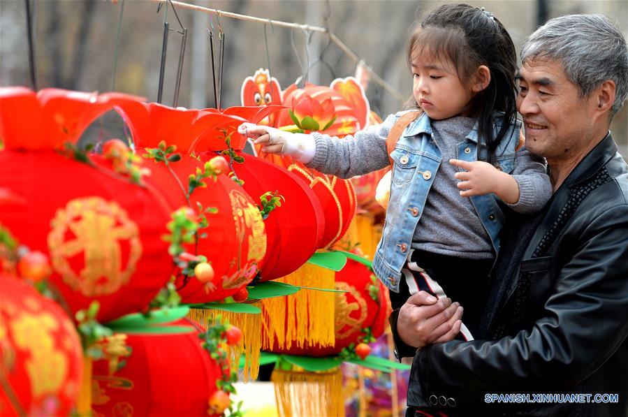 Ciudadanos compran linternas en un mercado de linternas en Xi'an, provincia de Shaanxi, en el noroeste de China, el 27 de febrero de 2018. El Festival de la Linterna se celebra el día 15 del primer mes lunar, o el 2 de marzo este a?o. (Xinhua/Liu Xiao)