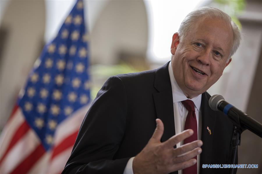 El subsecretario de Estado para Asuntos Políticos de Estados Unidos, Thomas A. Shannon, participa durante una conferencia de prensa luego de asistir a una reunión con el presidente de Ecuador, Lenín Moreno, en el Palacio de Carondelet, en Quito, capital de Ecuador, el 27 de febrero de 2018. El presidente ecuatoriano, Lenín Moreno, recibió el martes en el Palacio de Gobierno al subsecretario de Estado para Asuntos Políticos de Estados Unidos, Thomas A. Shannon, quien cumple una visita para tratar asuntos de la relación bilateral. En el encuentro participaron el embajador de Estados Unidos en Quito, Todd Chapman, y el embajador ecuatoriano en Washington, Francisco Carrión, según información difundida por la Presidencia ecuatoriana. (Xinhua/Santiago Armas)