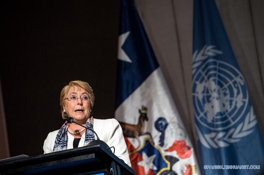 La presidenta de Chile, Michelle Bachelet, pronuncia un discurso durante la inauguración del IV Foro Global Empresas por la Igualdad de Género: el Futuro del Trabajo en la Agenda 2030", en Santiago, capital de Chile, el 27 de febrero de 2018. El IV Foro Global Empresas por la Igualdad de Género, es un evento gestionado por la Organización Internacional del Trabajo (OIT) en alianza con la Entidad de la Organización de las Naciones Unidas para la Igualdad de Género y el Emprendimiento de la Mujer (ONU Mujeres), el Programa de Naciones Unidas para el Desarrollo (PNUD) y el Ministerio de la Mujer de Chile. El foro reunirá más de 400 líderes empresariales, gobiernos, academias, sindicatos y sociedad civil de más de 25 países, con el propósito de compartir prácticas innovadoras para reducir las brechas de género en el lugar de trabajo y destacar el rol del sector privado como un jugador clave para el avance de la igualdad de género, el empoderamiento de la mujer y el logro de ambientes de trabajo más inclusivos, que contribuyan al logro de la Agenda 2030, de acuerdo con información de la prensa local. (Xinhua/Jorge Villegas)