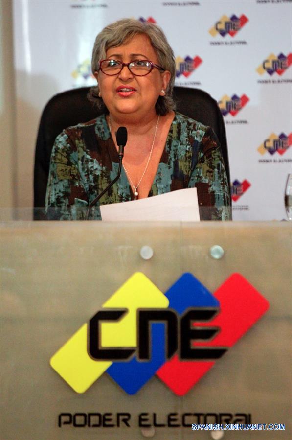 CARACAS, marzo 1, 2018 (Xinhua) -- La presidenta del Consejo Nacional Electoral (CNE), Tibisay Lucena, participa durante una conferencia y firma del acuerdo de garantías electorales entre el gobierno y la oposición, en las instalaciones del CNE, en Caracas, capital de Venezuela, el 1 de marzo de 2018. Representantes del gobierno y de la oposición de Venezuela acordaron el jueves posponer la celebración de las elecciones presidenciales, programadas para el 22 de abril, para la segunda quincena de mayo y juntar los comicios legislativos estatales y municipales. Durante la firma de acuerdo de garantías electorales entre el gobierno y la oposición, realizada en la sede del CNE, se propuso el cambio de fecha para hacerlos de forma simultánea. "Se propone que se realicen de manera simultánea las elecciones en la segunda quincena del mes de mayo del 2018", se?aló el texto que fue leído delante de la presidenta del CNE, Tibisay Lucena. El acuerdo, firmado por los partidos políticos que respaldan al presidente venezolano, Nicolás Maduro, y al candidato opositor Henri Falcón, busca garantizar los derechos electorales y rechaza la violencia como política para avanzar en la reconciliación. El acuerdo fue firmado en la sede del organismo comicial por los dirigentes políticos Luis Augusto Romero, de Avanzada Progresista (AP); Felipe Mujica, del Movimiento al Socialismo (MAS); Miguel Salazar, de Copei, y Jorge Rodríguez, ministro de Comunicación e Información, en representación del Polo Patriótico. (Xinhua/Boris Vergara)