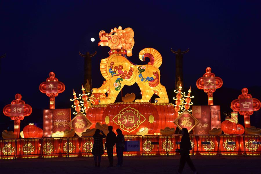 Imagen del 1 de marzo de 2018 de turistas visitando el área escénica del Mundo de Acrobacias de Wuqiao, en la ciudad de Cangzhou, provincia de Hebei, en el norte de China. El Festival de la Linterna se celebra el 2 de marzo este a?o. (Xinhua/Mu Yu)