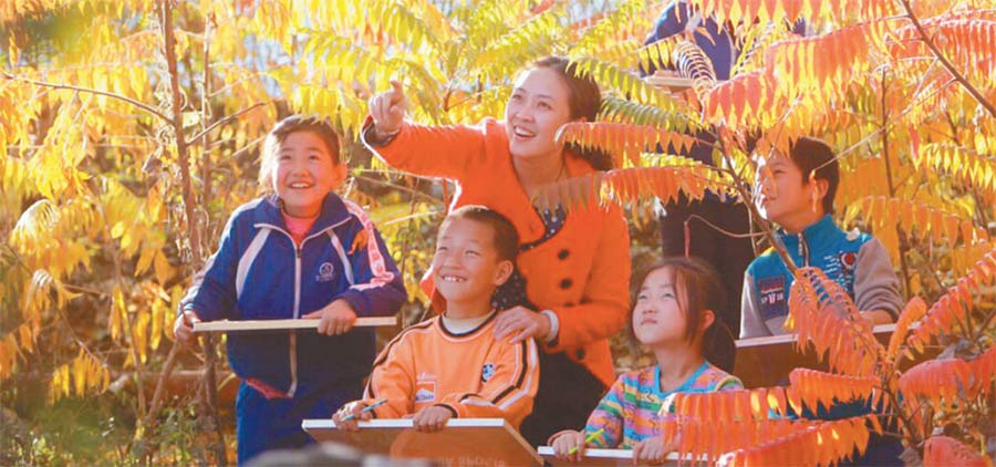Una profesora de la Escuela Primaria Experimental de Shuangluan, en Chengde, provincia de Hebei, ense?a a los alumnos a pintar el hermoso paisaje natal. (Foto: archivo)