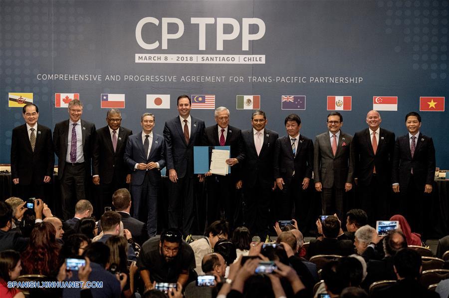 SANTIAGO, 8 mar (Xinhua) -- Ministros de 11 países firmaron hoy en Santiago de Chile el Tratado Integral y Progresista de Asociación Transpacífica (CPTPP, por sus siglas en inglés), que busca una integración económica plurinacional y que será el tercero más grande del mundo.