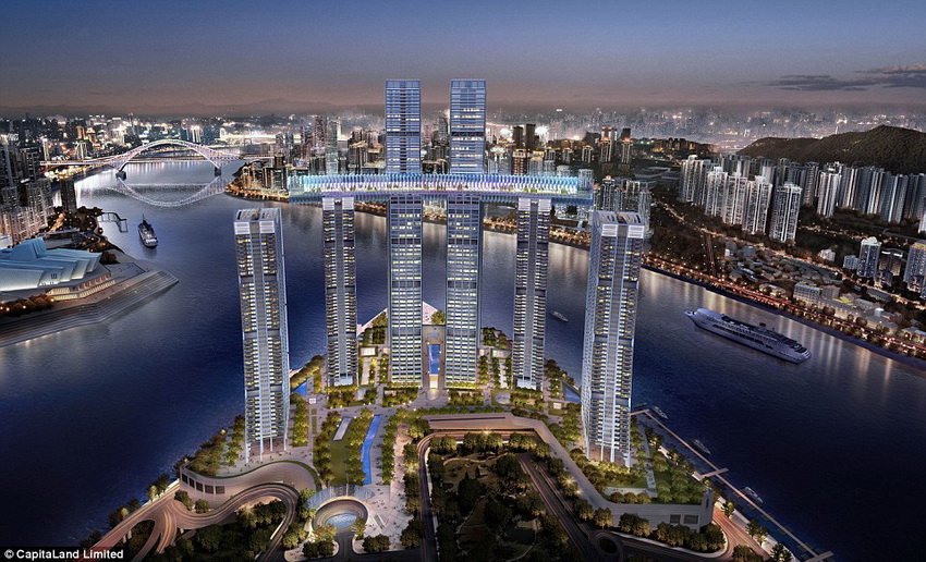 El monumental complejo llamado Raffles City Chongqing está a cargo de la compa?ía inmobiliaria Capita Land de Singapur, que también es propietaria de una cadena de centros comerciales y edificios de oficinas en diversas provincias chinas.