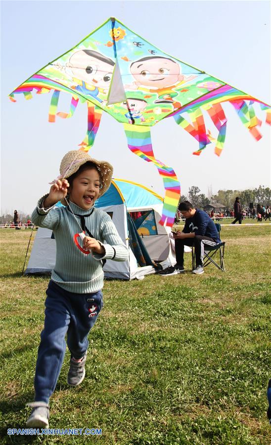 JIANGSU, marzo 10, 2018 (Xinhua) -- Un ni?o vuela un papalote en un área vacacional en Suzhou, en la provincia de Jiangsu, en el este de China, el 10 de marzo de 2018. Residentes locales pasan sus fines de semana en el exterior para disfrutar los paisajes de primavera mientras las temperaturas suben. (Xinhua/Zhu Guigen)
