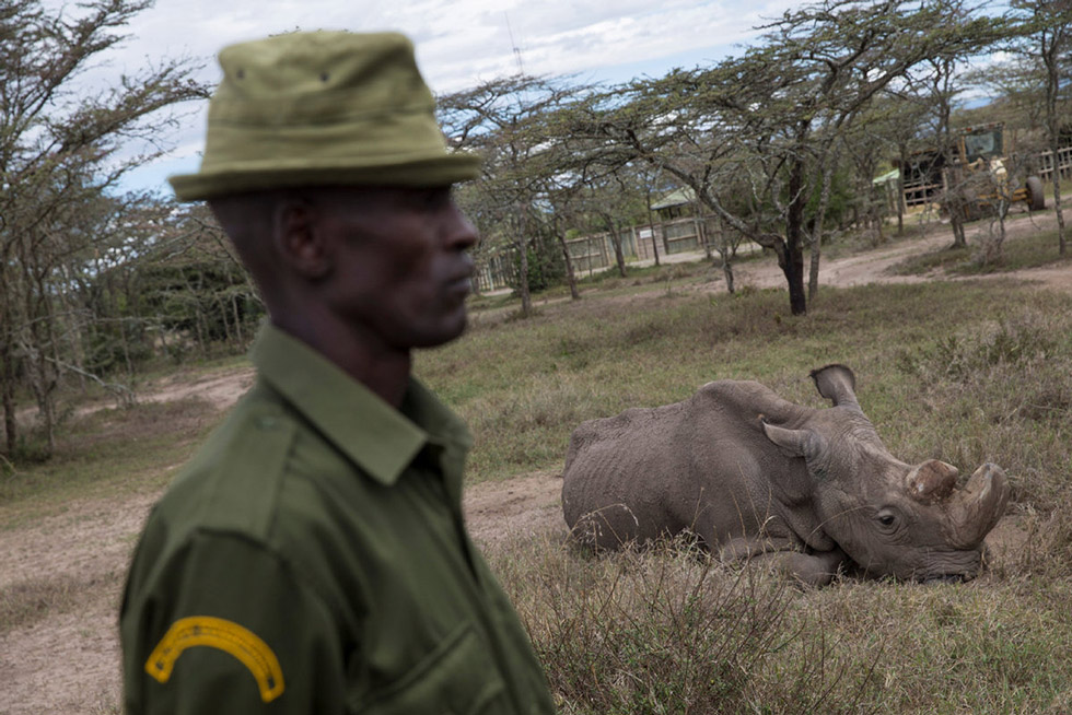 El rinoceronte Sudán está vigilado las 24 horas del día, a salvo de los cazadores furtivos.