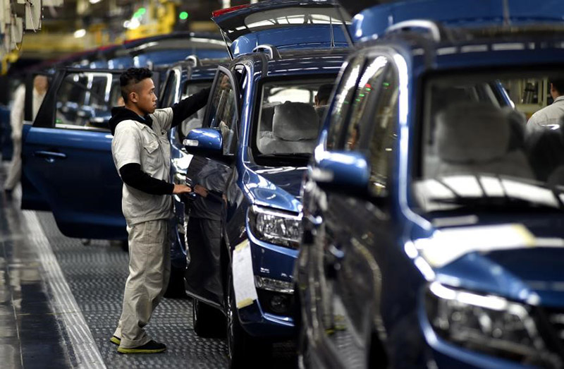 En enero de 2018, los trabajadores inspeccionan los automóviles en la base principal de montaje de la empresa Dongfeng Liuzhou Automobile Co., Ltd. (Fuente de la foto: Renmin Shijue)
