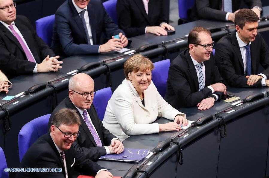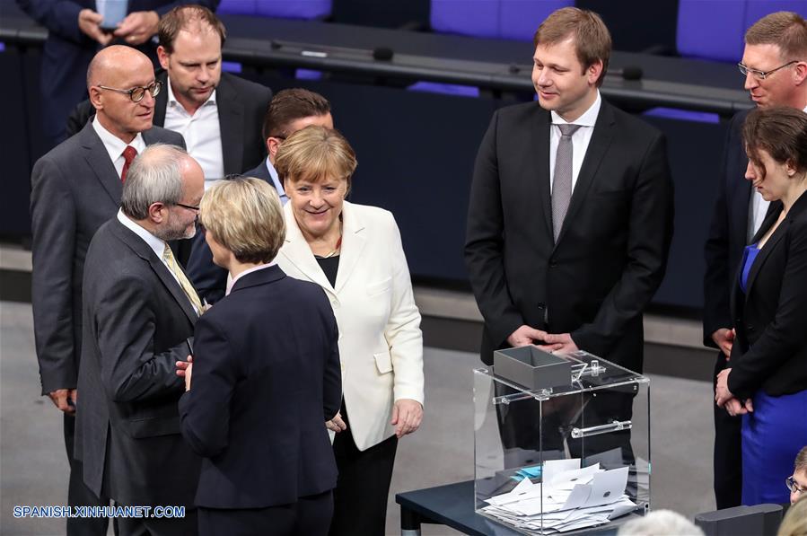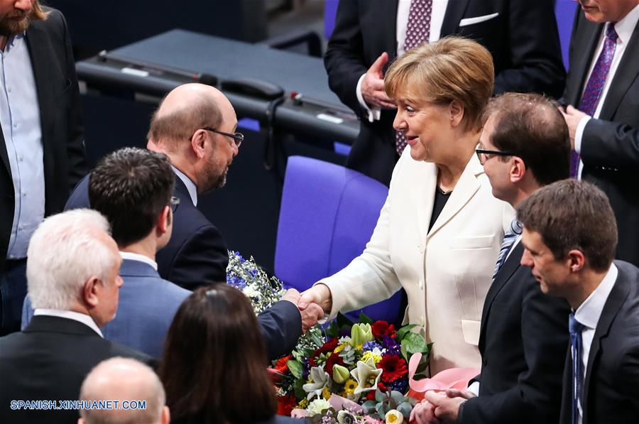 BERLIN, 14 mar (Xinhua) -- Angela Merkel ha sido reelegida como canciller alemana el miércoles por el Parlamento, dando comienzo a su cuarto mandato liderando la mayor economía europea.