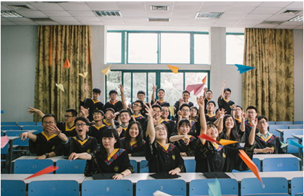 Los graduados de la Universidad de Zhejiang hacen volar los aviones de papel, símbolo del futuro. Julio de 2017. (Foto: Pueblo en Línea)