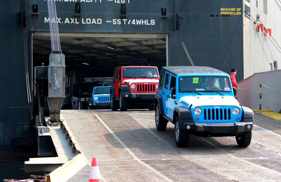 Beijing, 18/03/2018 (El Pueblo en Línea) -El 5 de diciembre de 2017, 440 vehículos de Wrangler Chrysler importados de EE. UU. , con un valor total de más de 200 millones de yuanes, llegan al muelle de automóviles Nansha, en el Puerto de Guangzhou, el 5 de diciembre de 2017. (Fuente de la foto: Cai Minjie / China News Service)